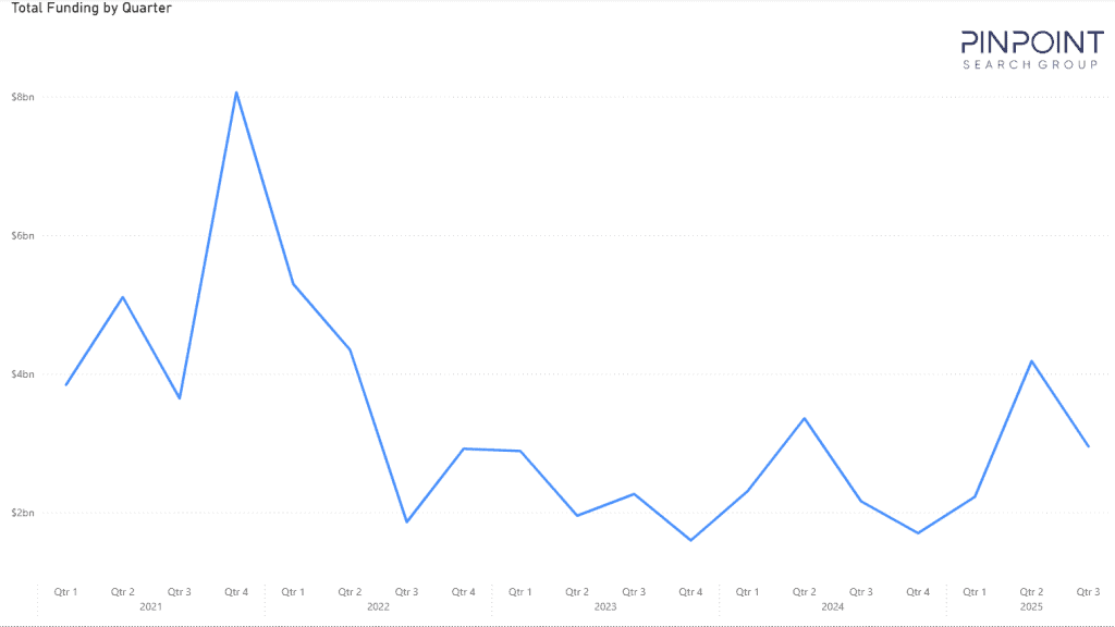 - The $2.95 Billion raised in Q3, 2025 represents a 37% increase in funding raised when compared to Q3, 2024.