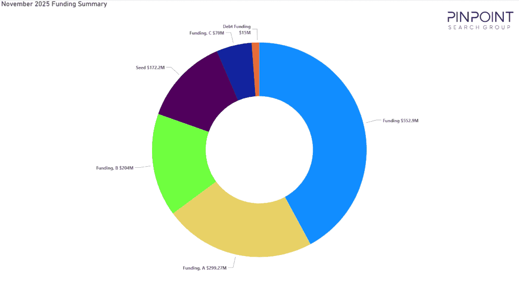 - The $1.3 Billion raised in November 2025 represents an 82% increase in funding raised when compared to November 2024.